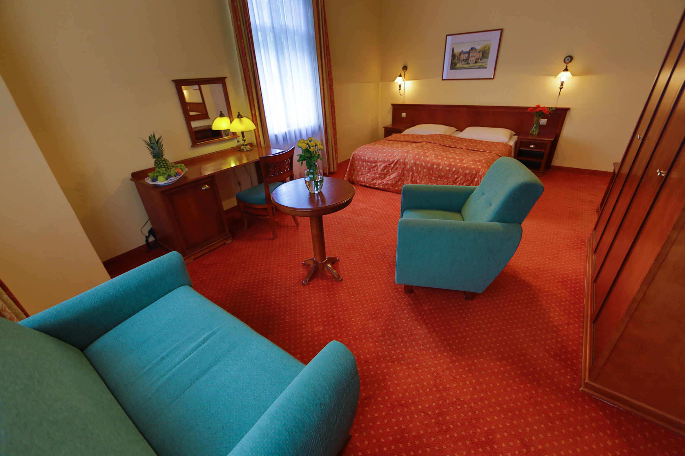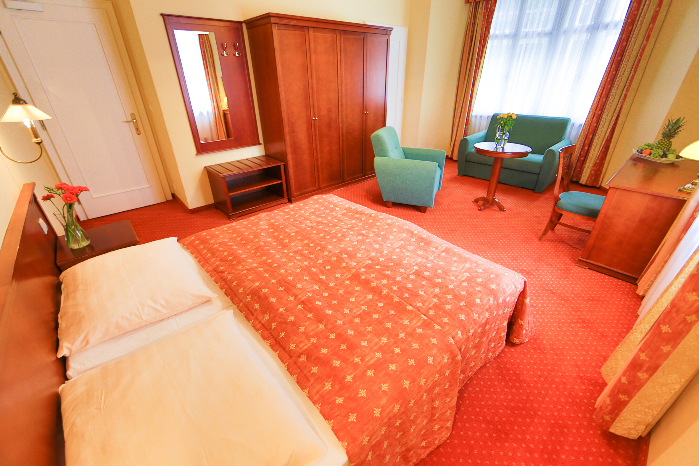vlastní koupelna a WC, fén, župan, TV se satelitním příjmem, telefon s přímou volbou, lednice, sejf a na některých pokojích balkon