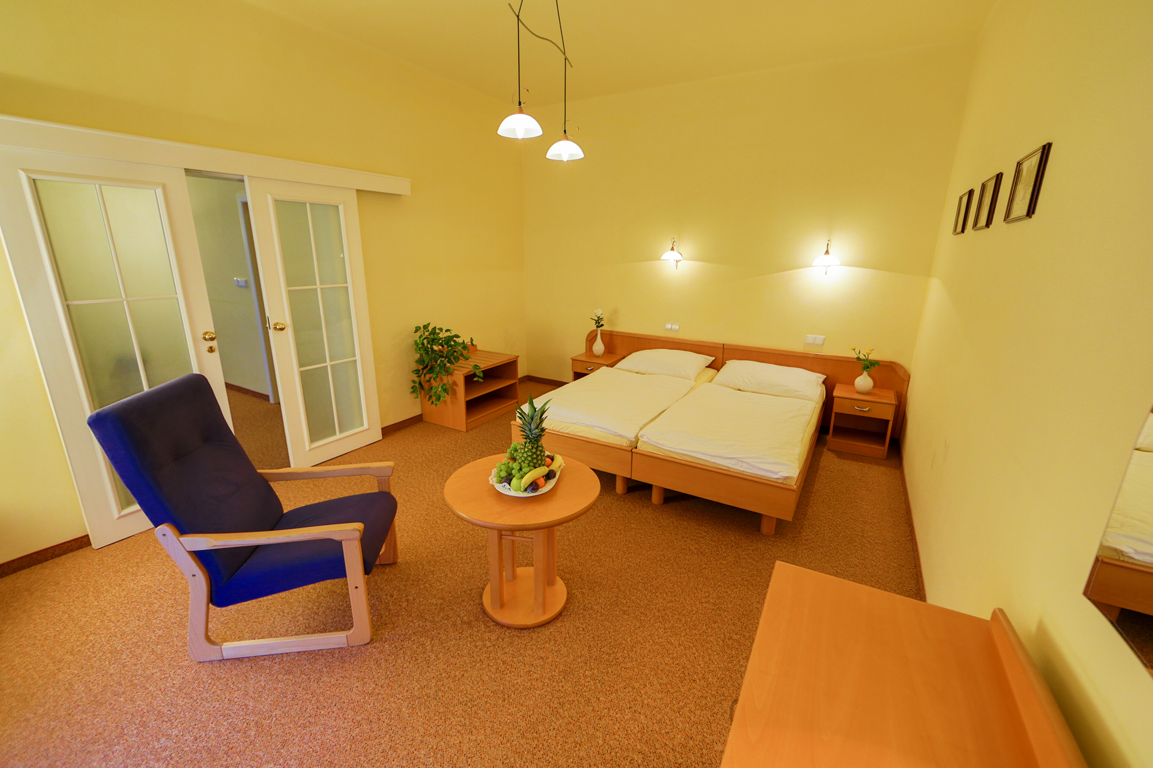 20 prostorných dvoulůžkovýcj pokojů, 6 třílůžkových pokojů a 2 apartmá